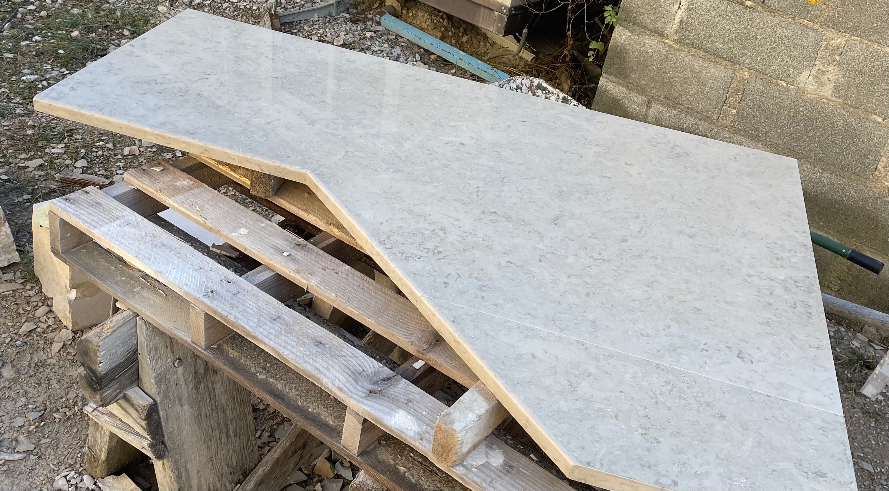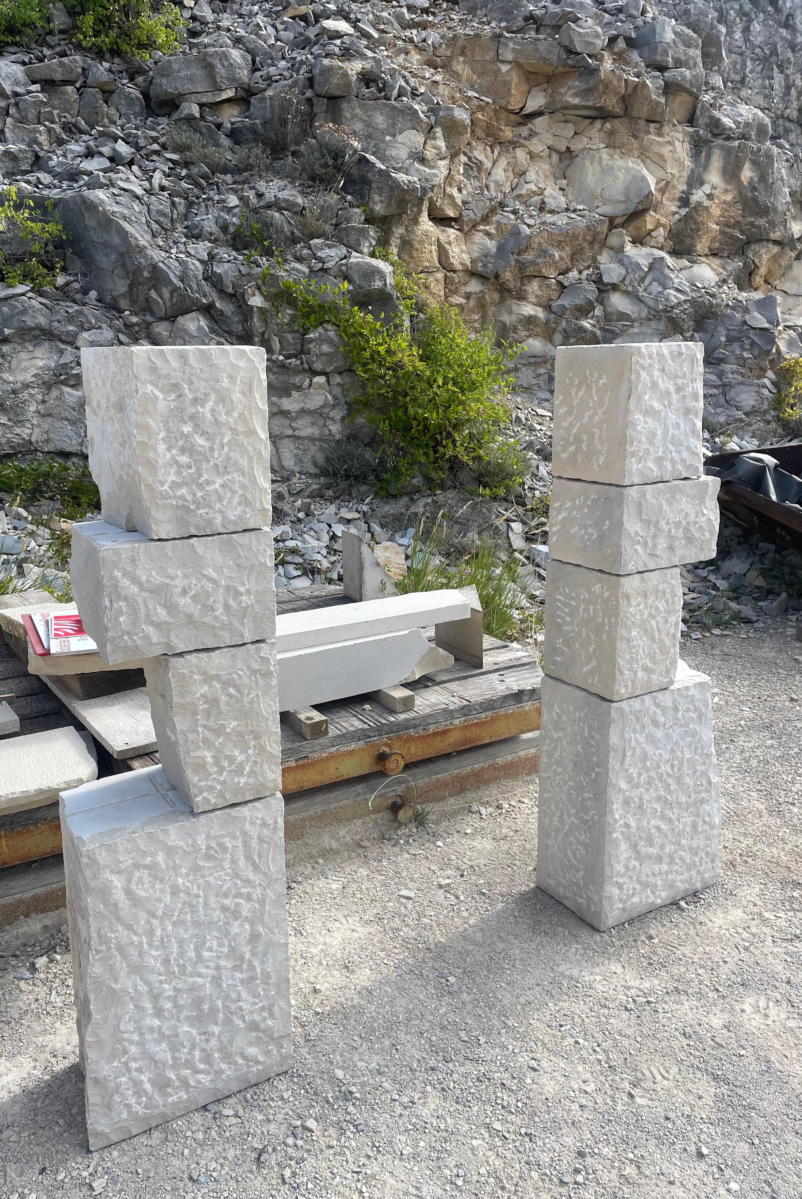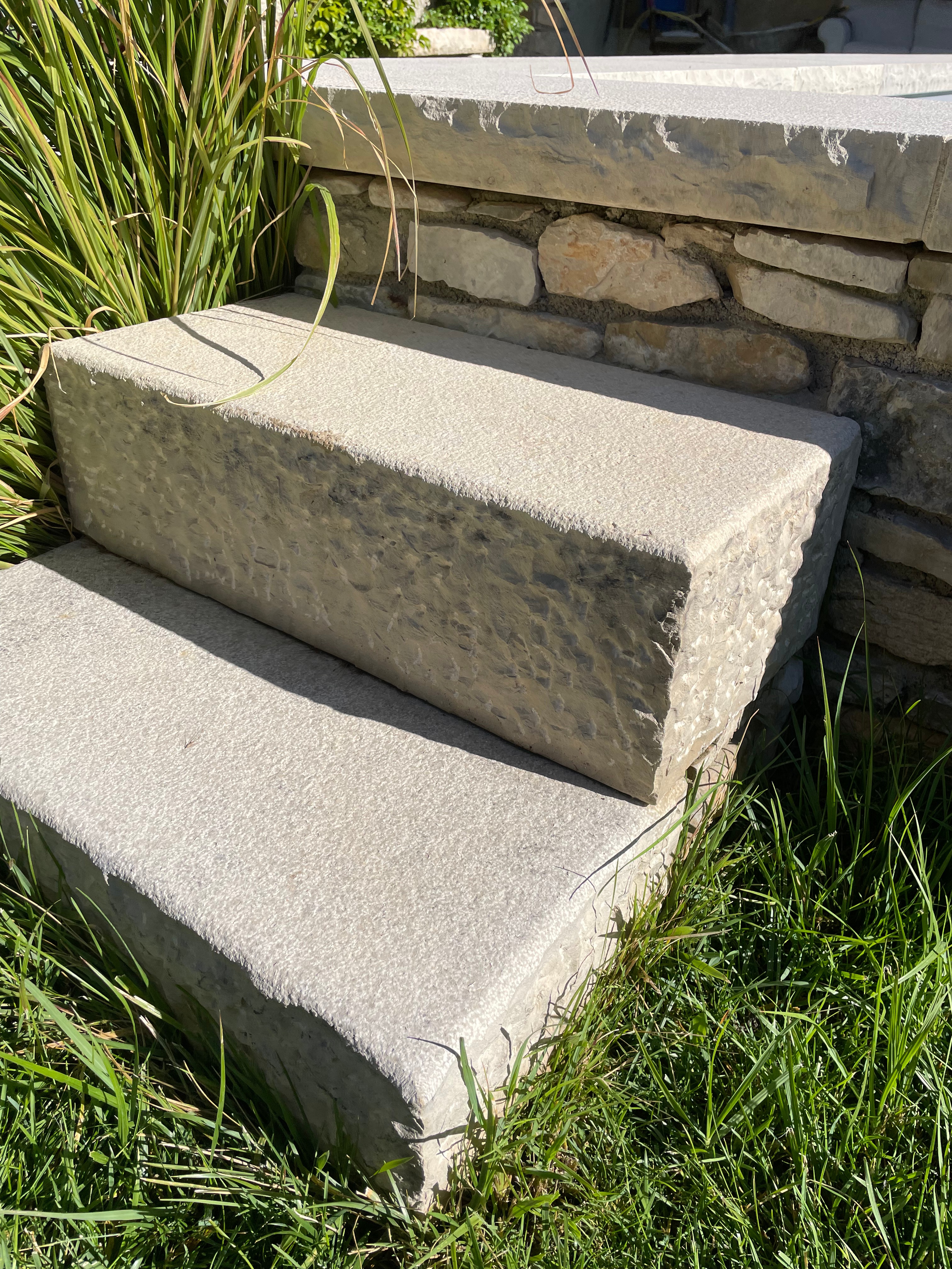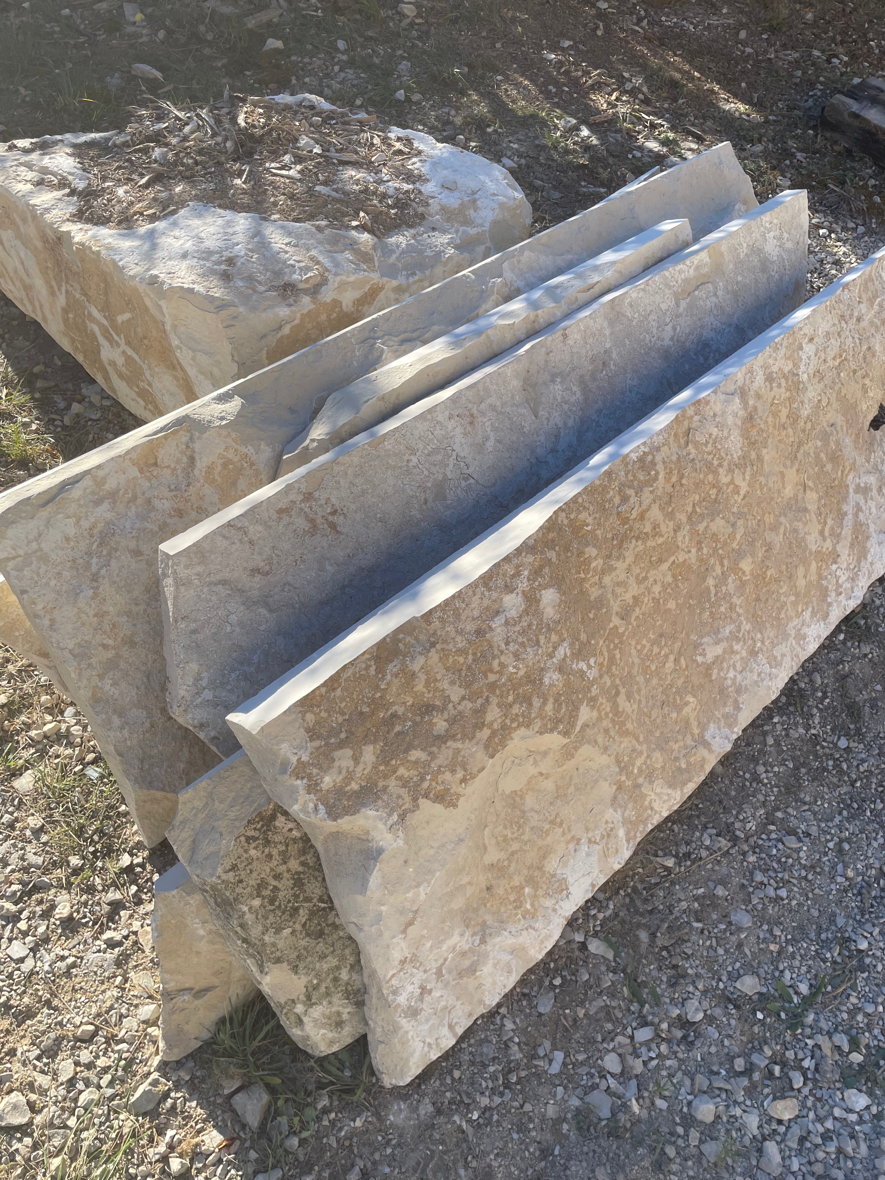 Pierres d’angle. Différentes finitions possibles : brut de sciage, éclaté, aiguillé.